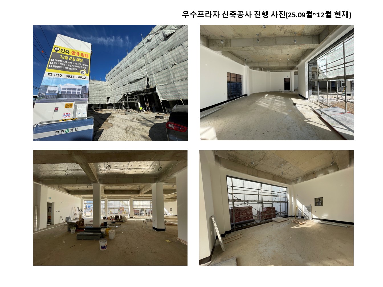 홈포트폴리오진행현장모습 진행현장모습 우수프라자 신축공사 작성자 (주)맑은세상종합건설 작성일 2025-12-18 16:06 조회 17 2025-12-18 좋아요 0 싫어요 0 인쇄 « 상하동 철거공사 목록보기 답글쓰기 Powered by KBoard